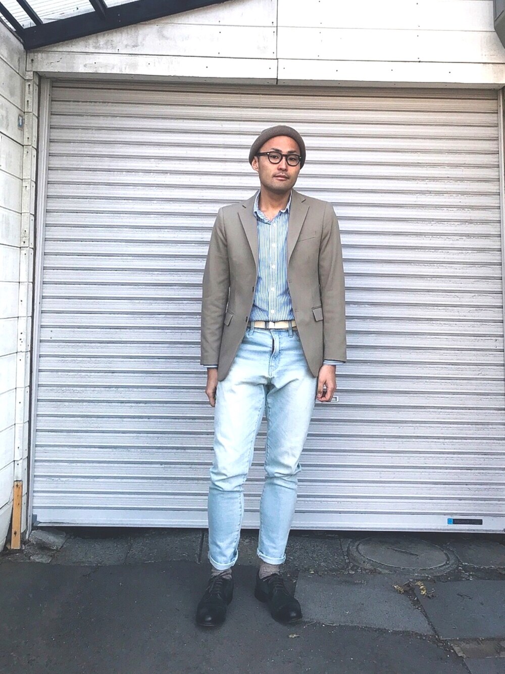 本日2枚目。 ジャケットに色落ち風のストレートデニムを合わせて。