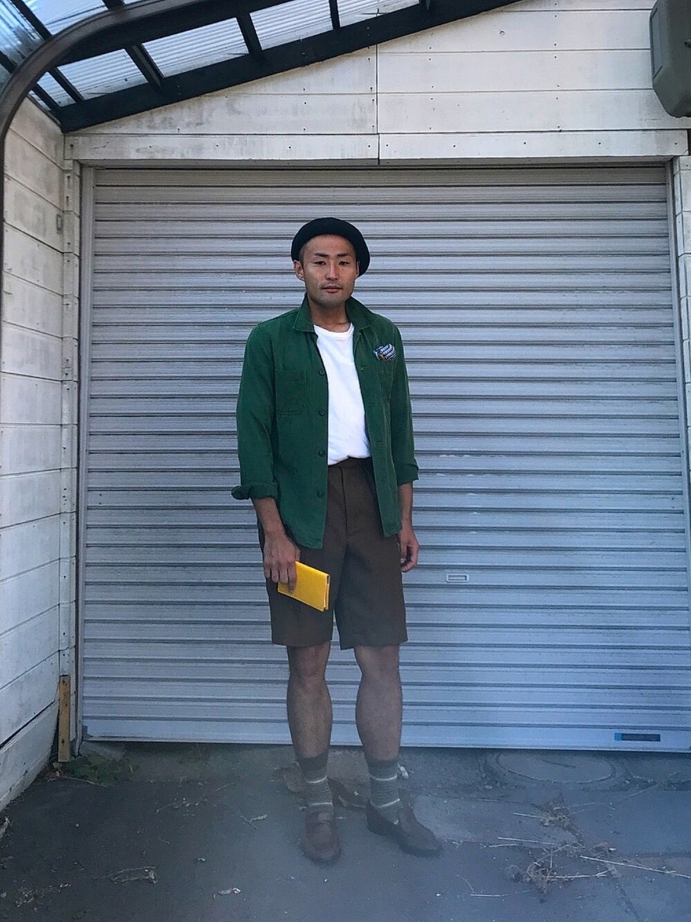 リューマのスラックス「実物 新品 イギリス陸軍 ALL RANKS BARRACK DRESS オフィサーショートパンツ」を使ったコーディネート