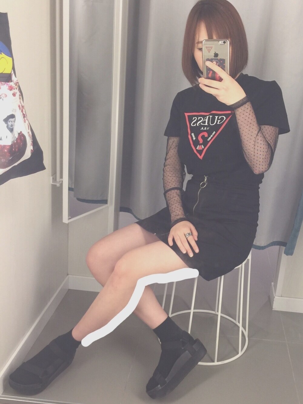 GuessのTシャツ着てる人毎日必ず見る👁 みんな持ってるけどやっぱり可愛い〜☺💗🌈