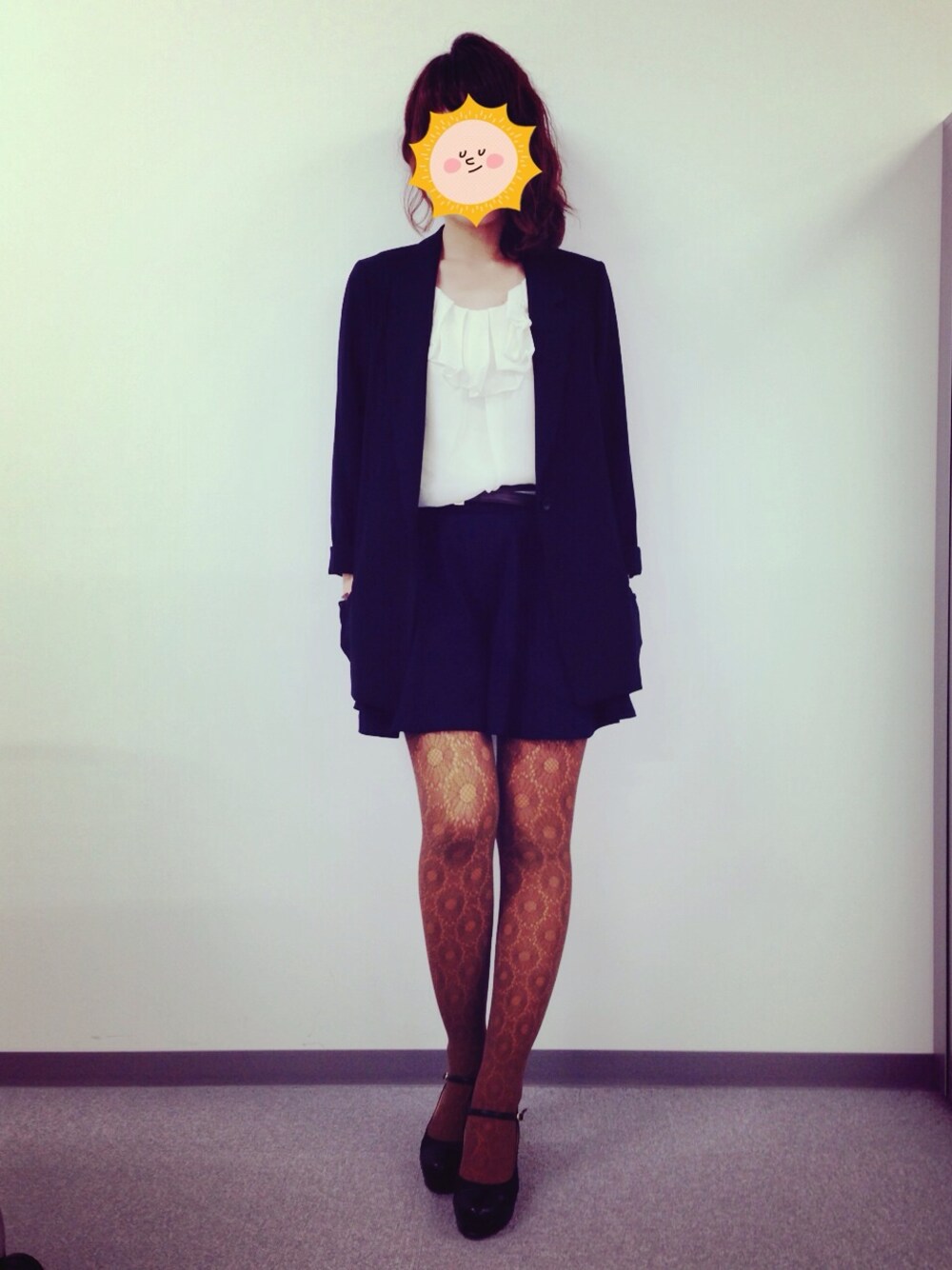 ★今日のカラー★ コン×マスタード×ホワイト ★主役アイテム★ 花柄タイツ ★着用アイテム★ ジャケット →NATURAL BEAUTY BASIC キュロット →aquagirl タイツ →tabio