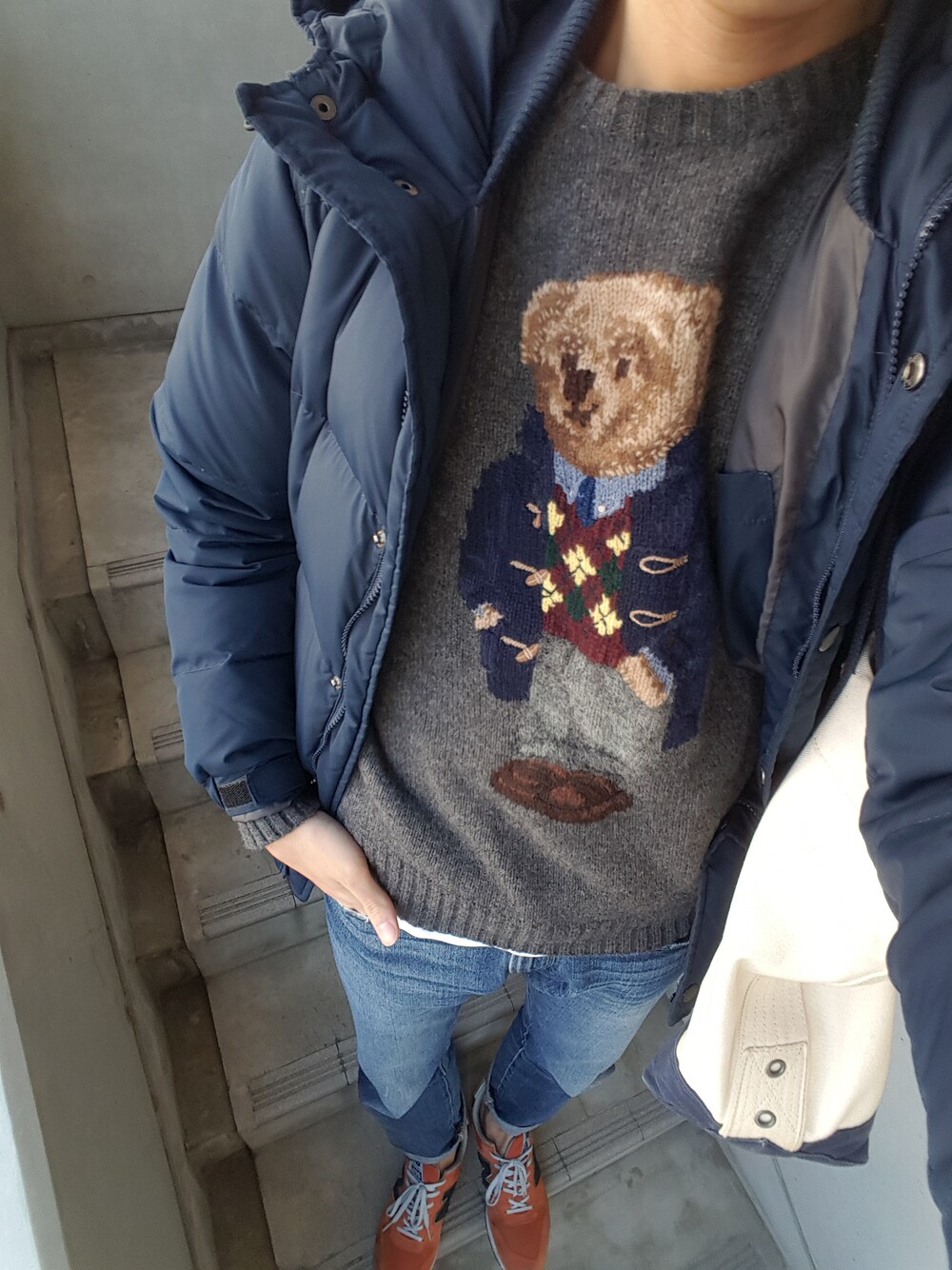 おでかけ。 寒いけどポロベア着れたのでまんぞく。 ダウンと靴以外ぜんぶポロ。 wearing polobear's sweater.
