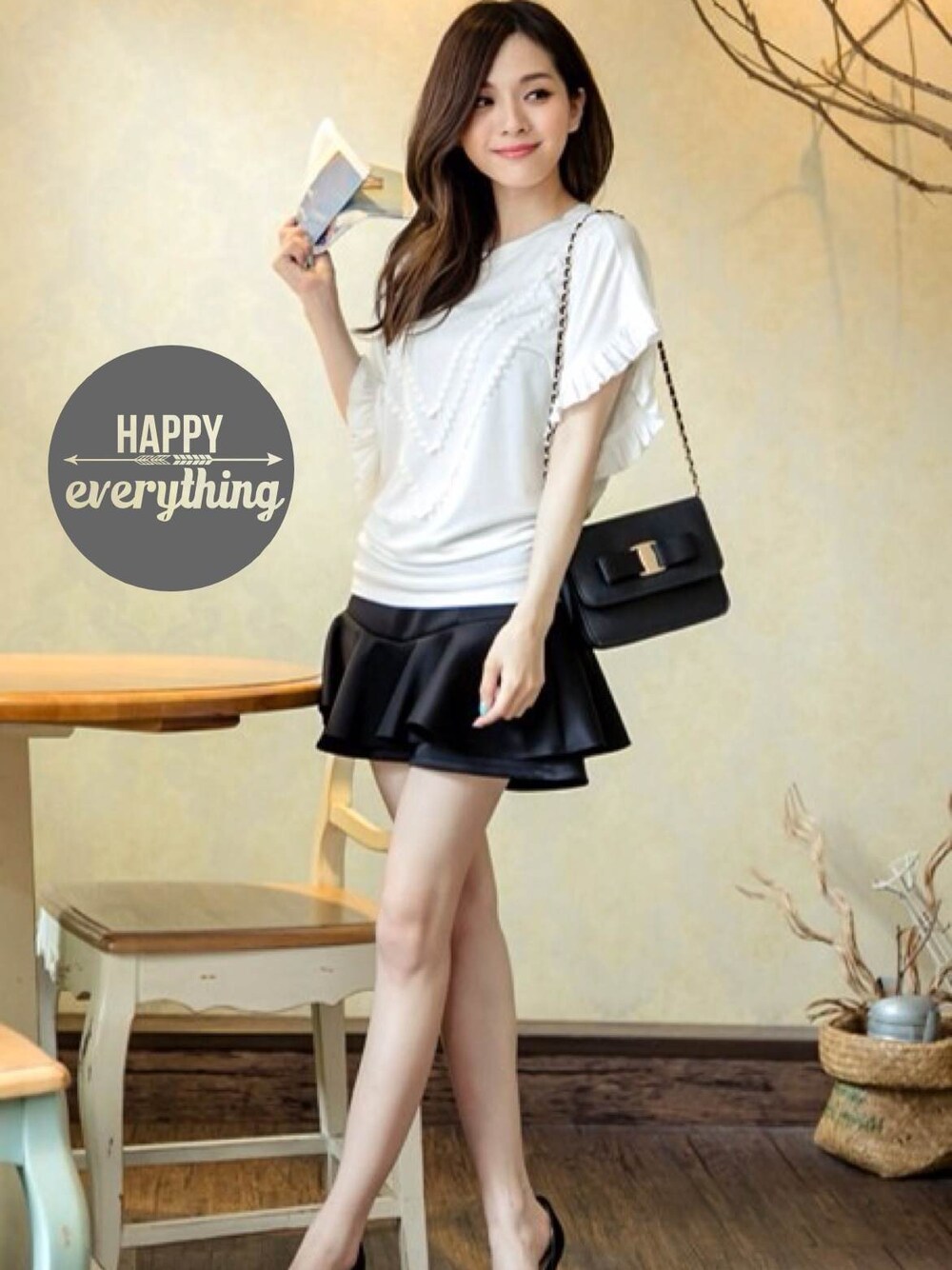 ◍蝴 蝶 袖 不 怕◍ 袖口特別加入荷葉滾邊設計,讓袖子呈現蓬蓬的造型感~ 寬袖剪裁來修飾手臂!