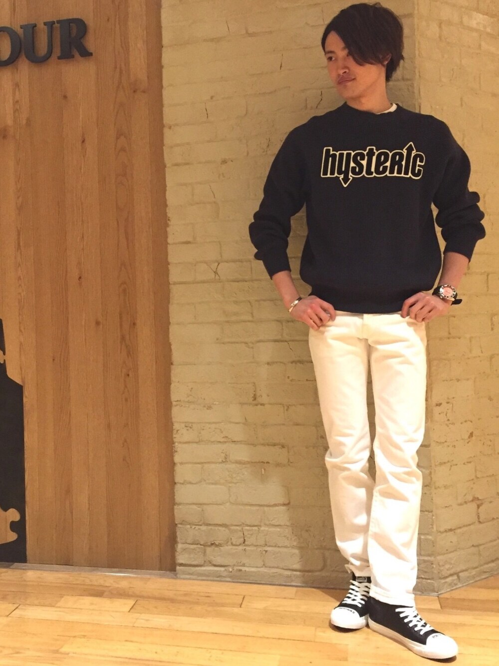 obi(HYSTERIC GLAMOUR銀座マロニエゲート店)のニット/セーター「HYSTERIC LOGOワッペン プルオーバー」を使ったコーディネート