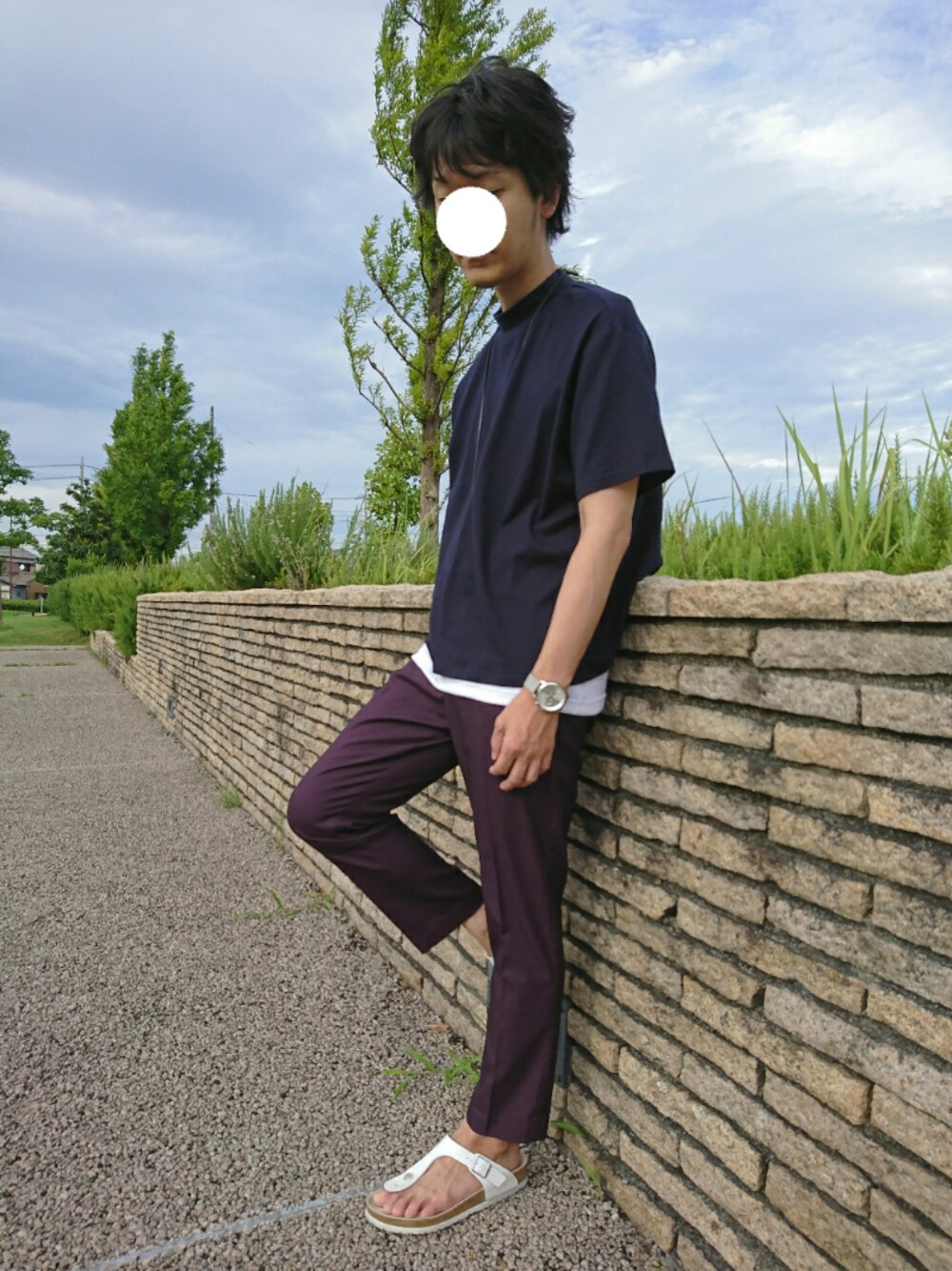 ネイビー × パープル コーデです! トップス、パンツともに ユニクロのWOMEN'Sです! パープルのパンツ、 秋冬すごく使えそうです! トップス XL パンツ L