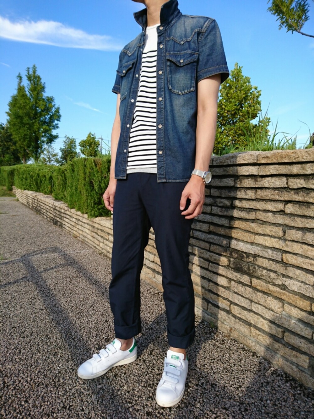 デニムシャツにベルクロスタンスミス