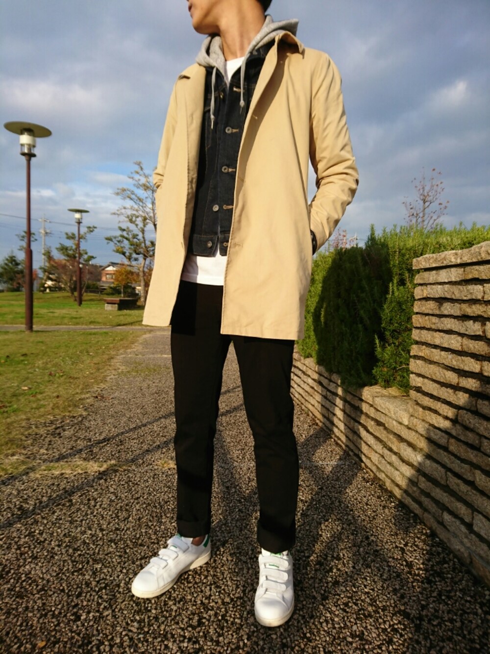 ユニクロコーデ! ステンカラーコート × デニムジャケット