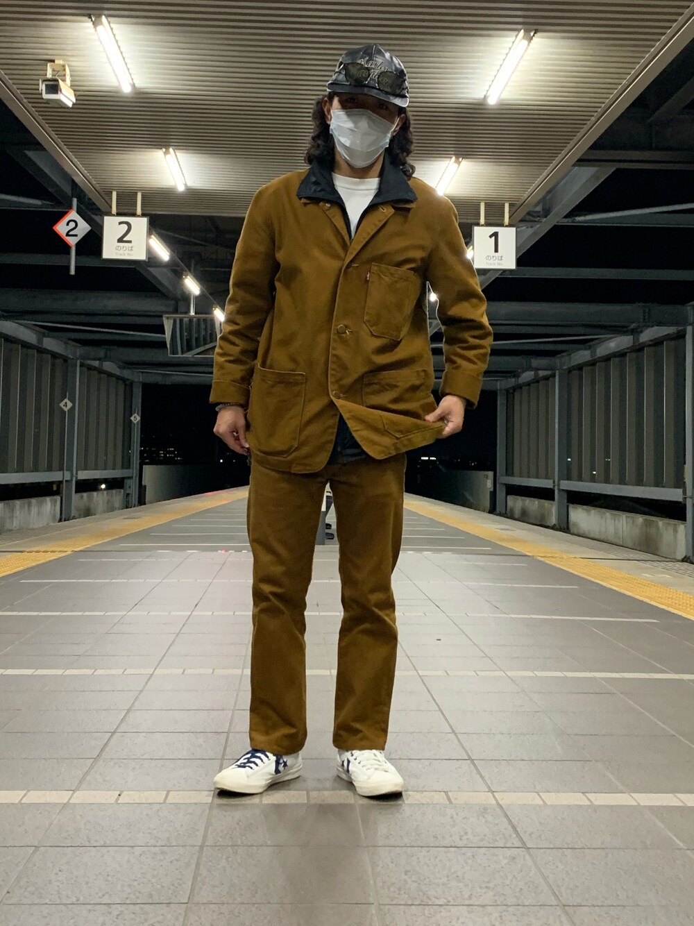 LEVI’Sのセットアップ風。 中の白Tシャツだけじゃ寂しかったので kappaのジャージを開襟シャツみたいに 着ました。