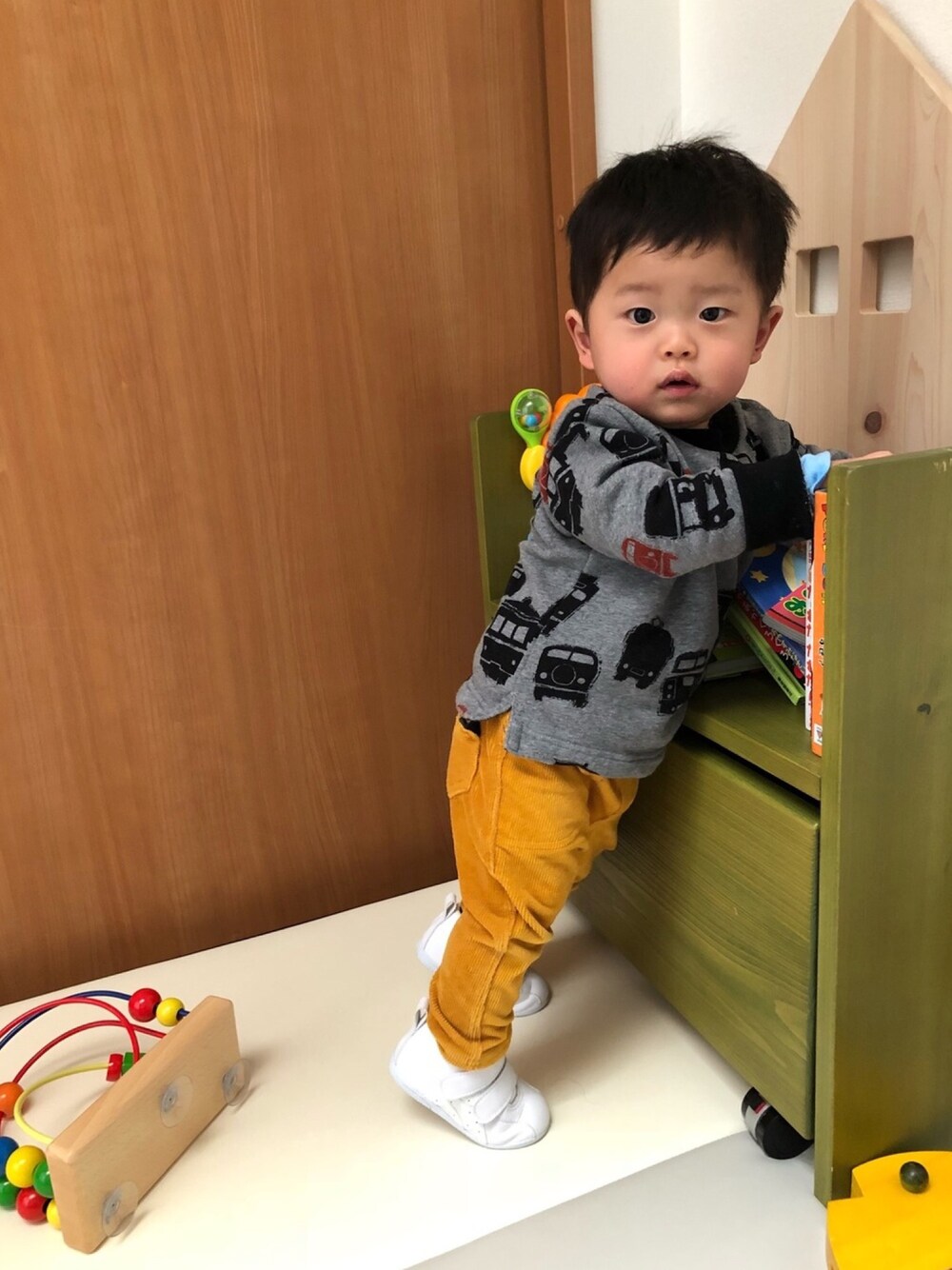 特に用が無かったので今日はお家でまったり😊 男の子っぽい乗り物のスウェットには、元気いっぱいイエローパンツで。 この後、お買い物に行く時に、いつも着るコートを着せて、とんがり帽子かぶせてたら、どちらもイエローで全身イエローになってました😂💦