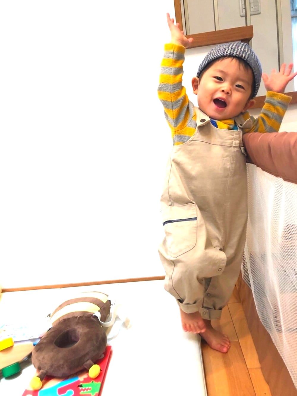 今日はだいぶ暖かかったです☀️ イエローボーダーで元気よく‼︎ サロペット…オムツ替えの時は若干面倒ですが、やっぱり可愛いですね♡ ぼっちゃんは、今日も元気に遊びまくり、散らかしまくり…ご機嫌な1日でした😄