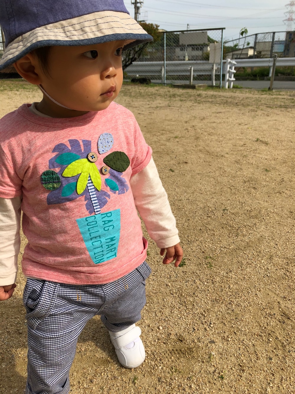 木曜日の夕方。 坊ちゃんとお散歩。 外でもだいぶ1人で歩けるようになりました😊 陽射しが強くなってきたので帽子を被って🧢 ピンクのTシャツ…女の私より似合ってる⁉︎ 男の子でも全然アリだな〜としみじみ☺️
