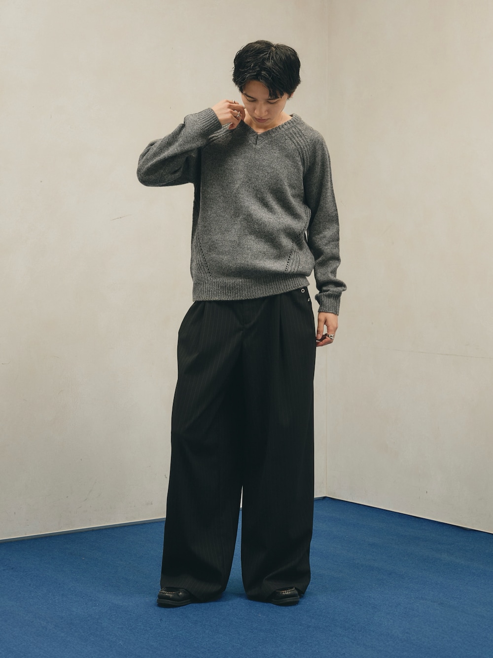 hikaruのスラックス「【セットアップ対応】Eyelet-Detail Assorted Two-Tuck Wide Slacks / ハトメデザインアソート2タックワイドスラックス」を使ったコーディネート