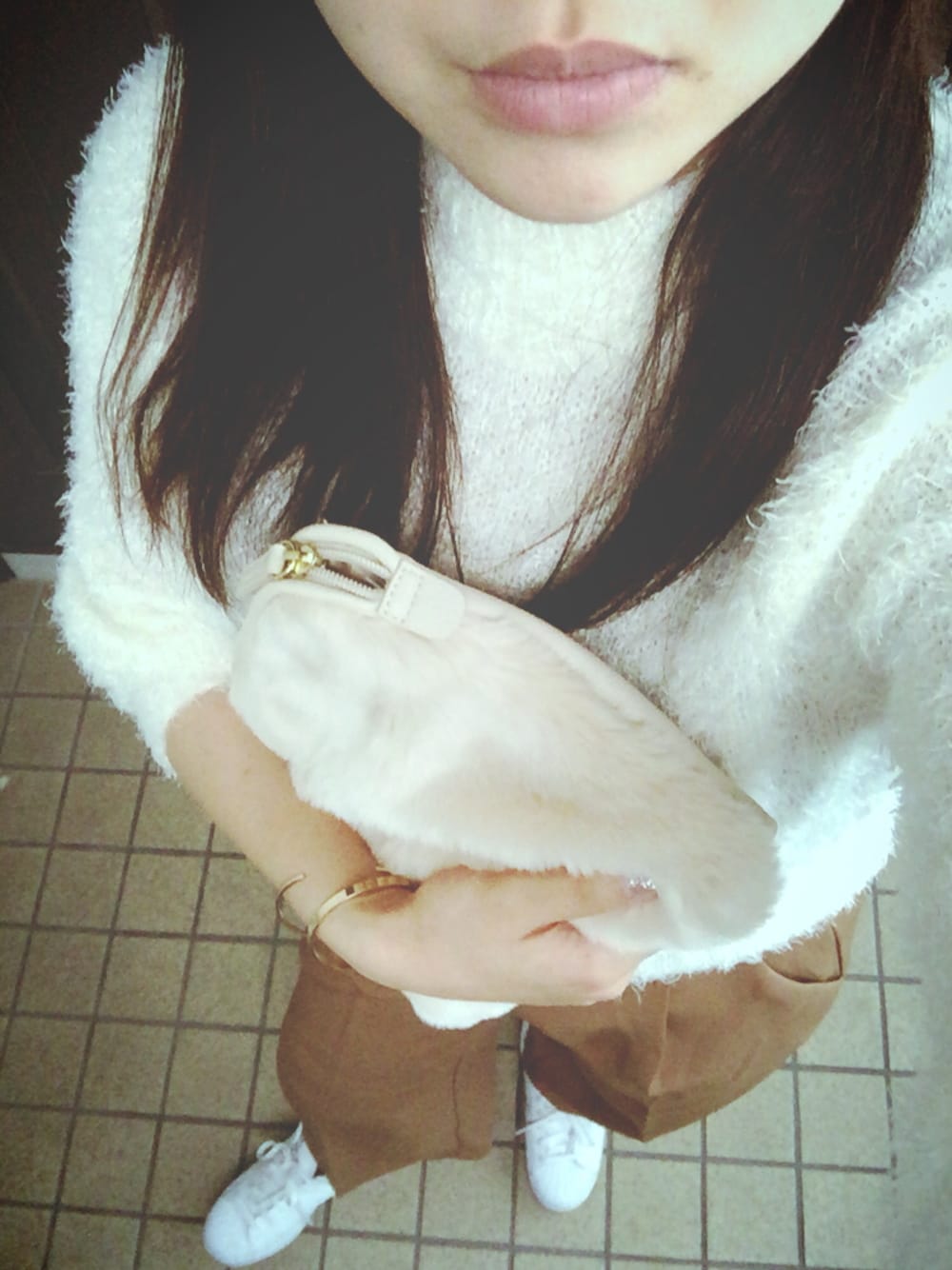 GUコーデ ニットにワイドパンツにファークラッチ 一昨日GUで仕入れたばかり 彼に今日のコーデ好きって言われて ハッピーハッピー