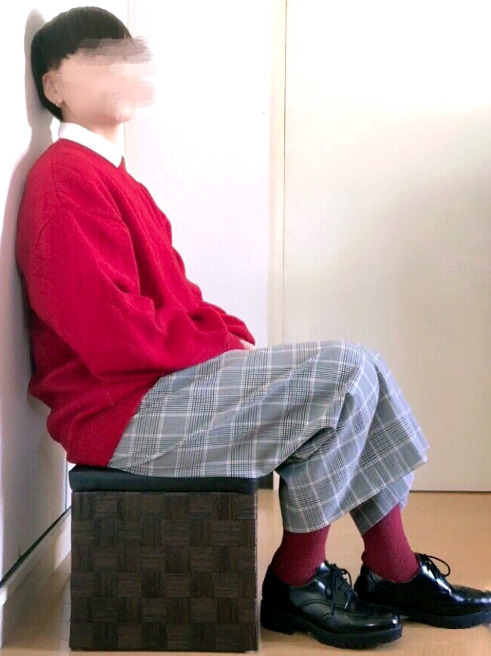 無印の靴下、ワイドパンツで座った時に肌見えない長さで良い◎