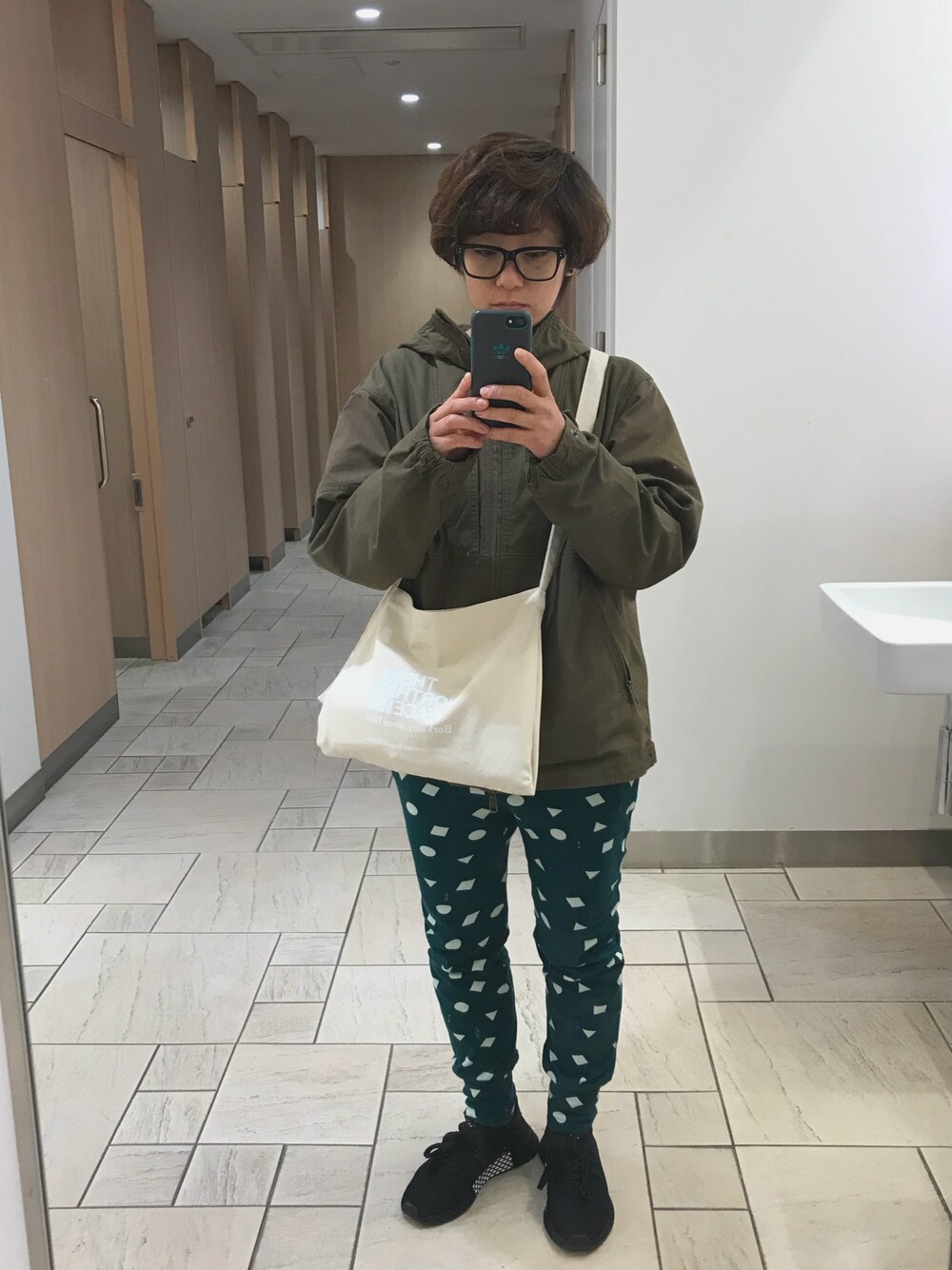 offday. ノースのファイヤジャケット めっちゃ使いやすい✨ アディダスのスニーカー 軽くて履きやすい✨ 安定のラクチンコーデ🙌 ラクチンばっかりで 買った服早く着なきゃーな😂