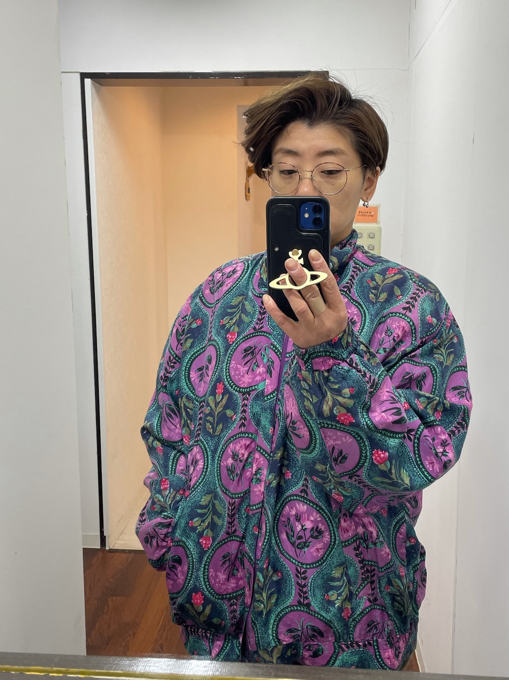 派手でレトロな古着 サロンコーデ。 また髪型が短くなった。 後ろは刈り上げ!