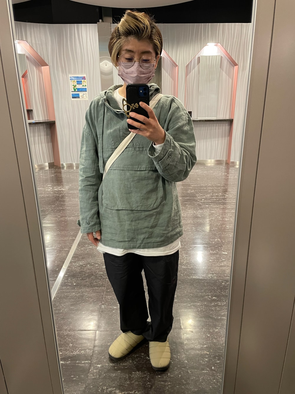 久しぶりの遠出。 軽くて着やすいリネン。 ナイロンパンツ。 少し寒かったから丁度よき!