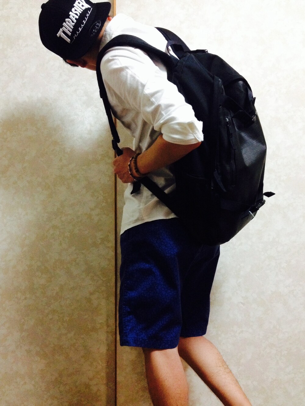 見て下さりありがとうございます。 キレイめとストリートのMIXです 白シャツを袖まくりして、紺のハーフパンツで合わせてます フォローよろしくお願いしますm(_ _)m