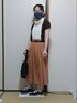 ブラック系のショルダーバッグを着用したレディースの秋コーディネートの2枚目の写真