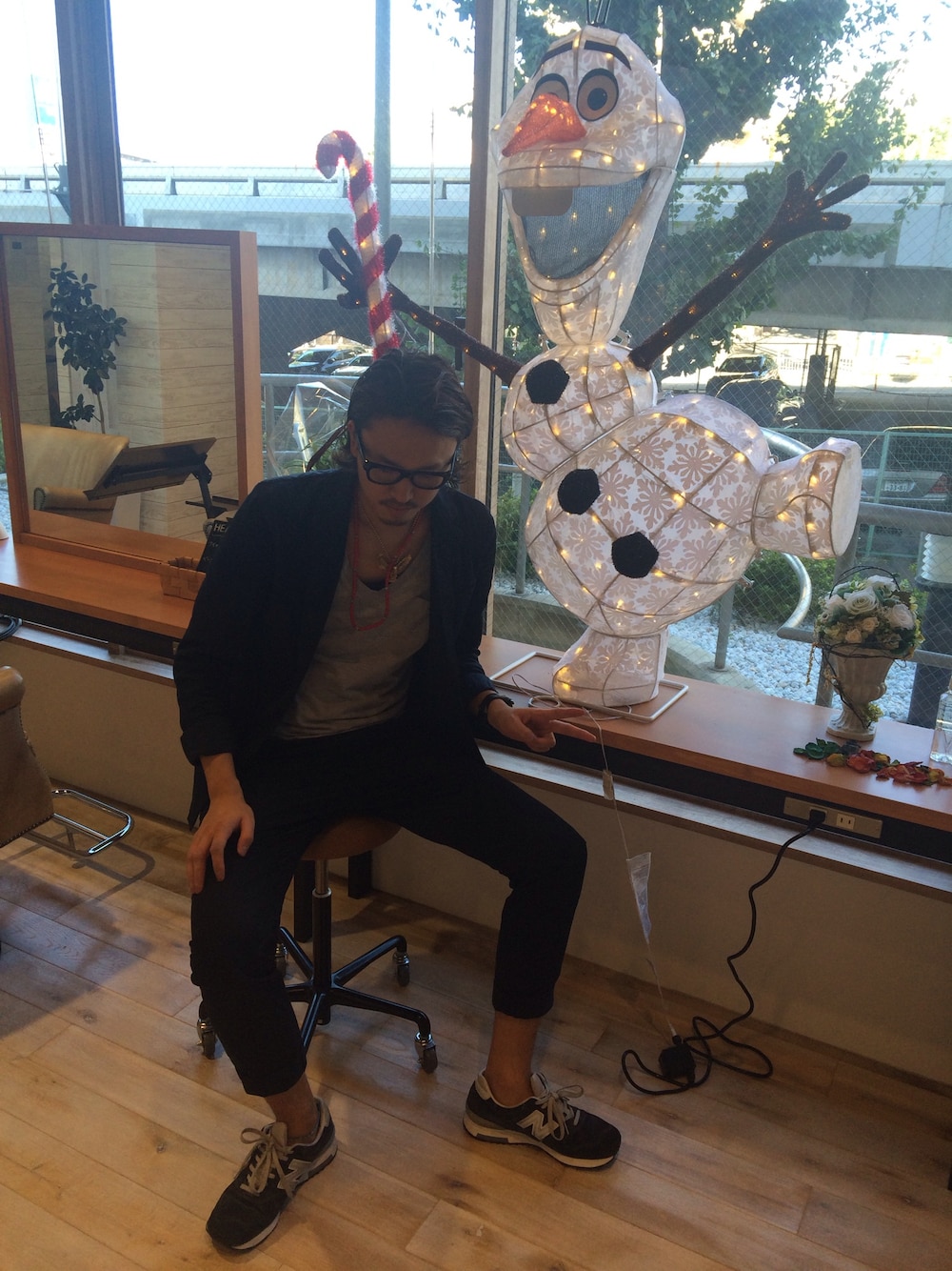 お久しぶりです! バタバタして気がついたら10月でした。 ネイビーのセットアップでかっちりしてみました! 子供達が喜びそうなので店の中にオラフを置いてみました! 早くパーマあてたい。