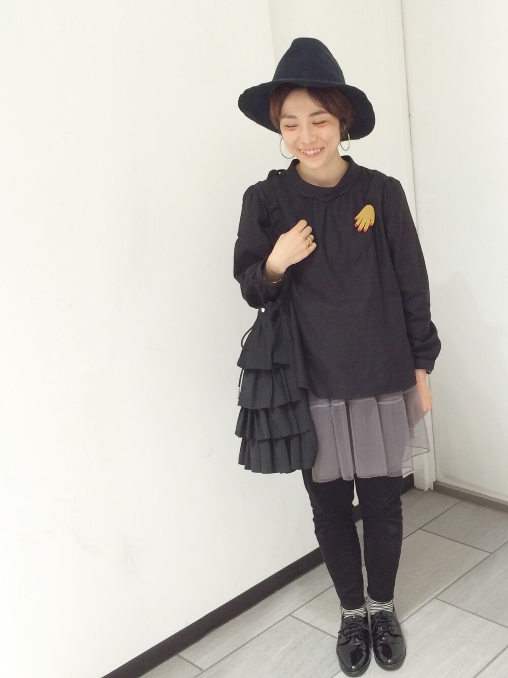 ブラックな日◎ 帽子はネイビーですが やはりブラックコーデに 合わせやすいですね〜 ハット、シューズが かっちりなかんじなので フリルトートで少し甘く〜 フーリダム・ハット/カオリノモリ フリルトートⅢ/キャセリーニ body partsブローチ手/gargle