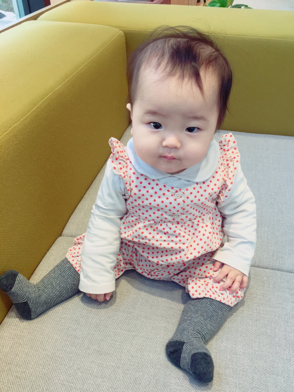 長女のお下がりを着せました。ほんの少し前に着ていたのにもう懐かしいです。 子どもの成長は嬉しいけど、大きくならないでって気持ちもあります。こんな小さいのも一瞬。大切な時間です。