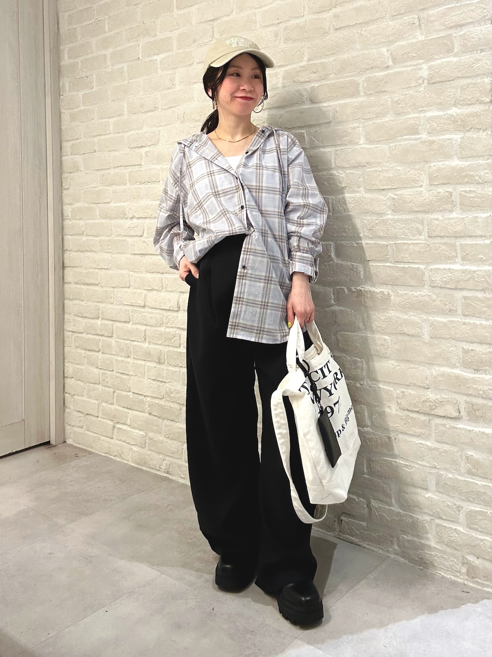 あべちゃん(アバハウス 三井アウトレットパーク横浜ベイサイド店(LADIE'S))のシャツ/ブラウス「【シアー素材】チェックフードシャツ/春服/夏服/ゆったり/羽織り」を使ったコーディネート