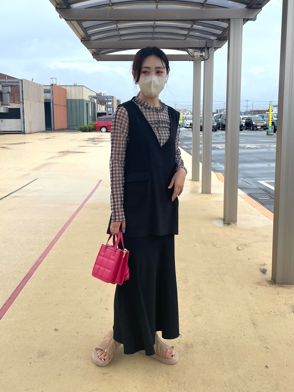 ブラックでまとめてみました。 小物にカラー物をとりいれたのがポイントです。