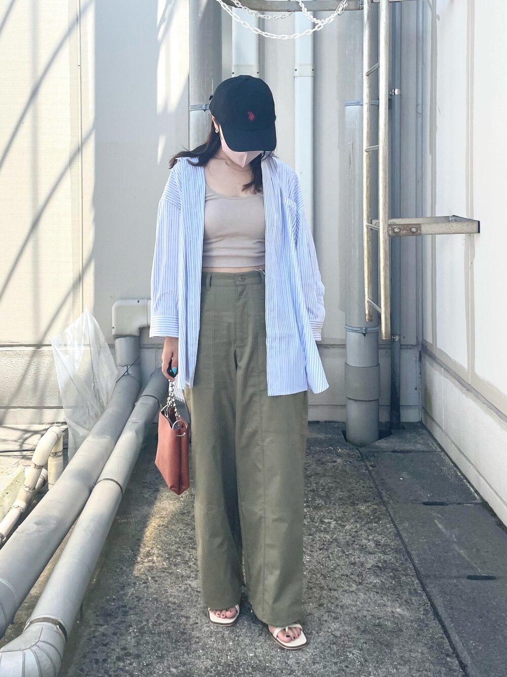 nanakoのカーゴパンツ「裾ドロストワークパンツ」を使ったコーディネート