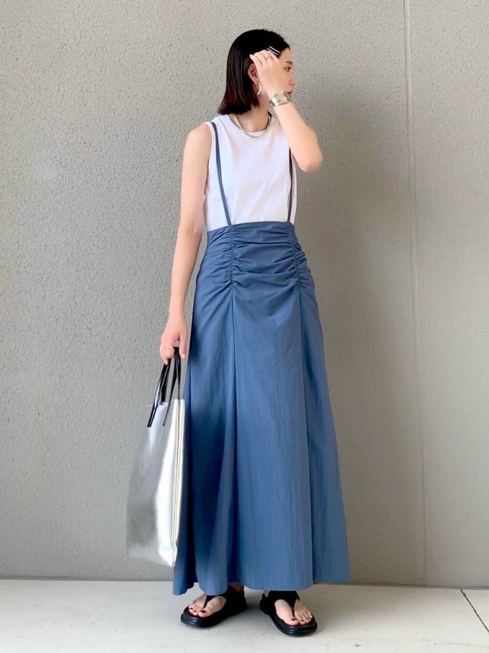 OKIRIのスカート「Ray BEAMS / ウエスト ギャザー サス付 スカート」を使ったコーディネート