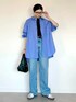 ご覧いただきありがとうございます♡ 色味の違うブルーを合わせたブルーコーデ💙 ネイビーのタンクトップ、形めっちゃキレイだから夏は1枚で着たい🥰