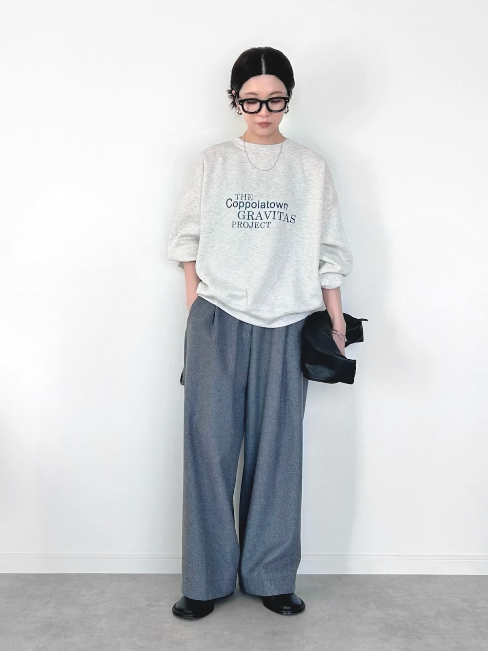 OKIRIのスウェット「デイリーアソートプリントロゴスウェットトレーナー」を使ったコーディネート