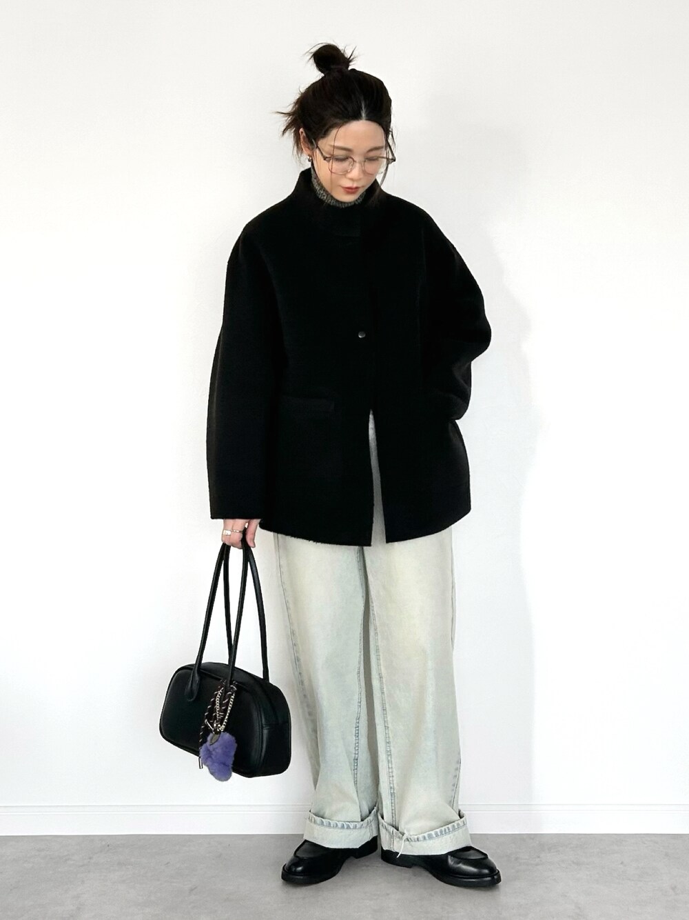 最近デニムにローファー合わせるのが気分🩶 服がシンプルだからバッグにチャームつけてみた🍇🤎 Instagram→@okiri_021 こちらもよろしくお願いします♡