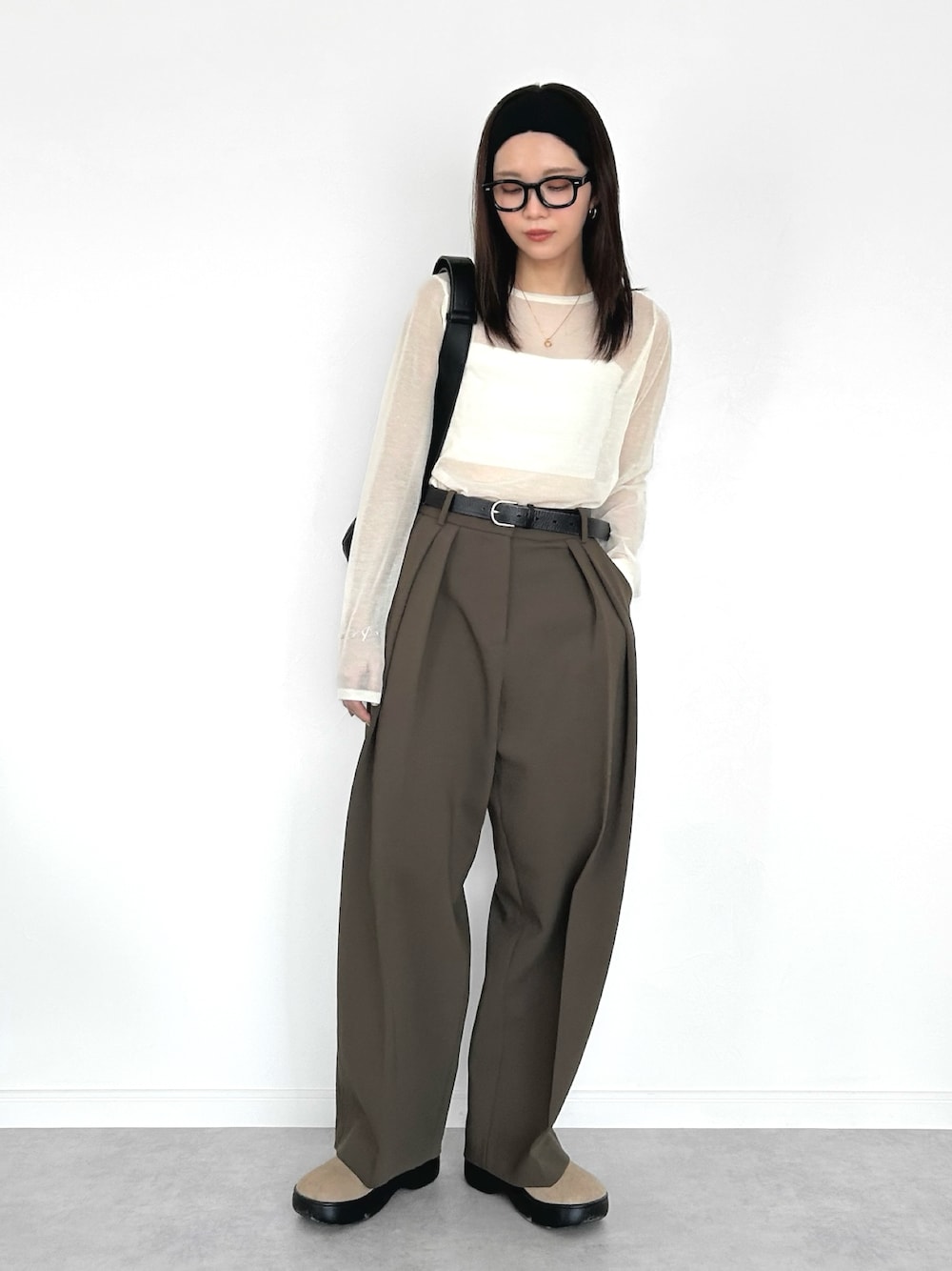 OKIRIのニット/セーター「【サイズ展開あり】クルーネックシアーニットプルオーバー」を使ったコーディネート
