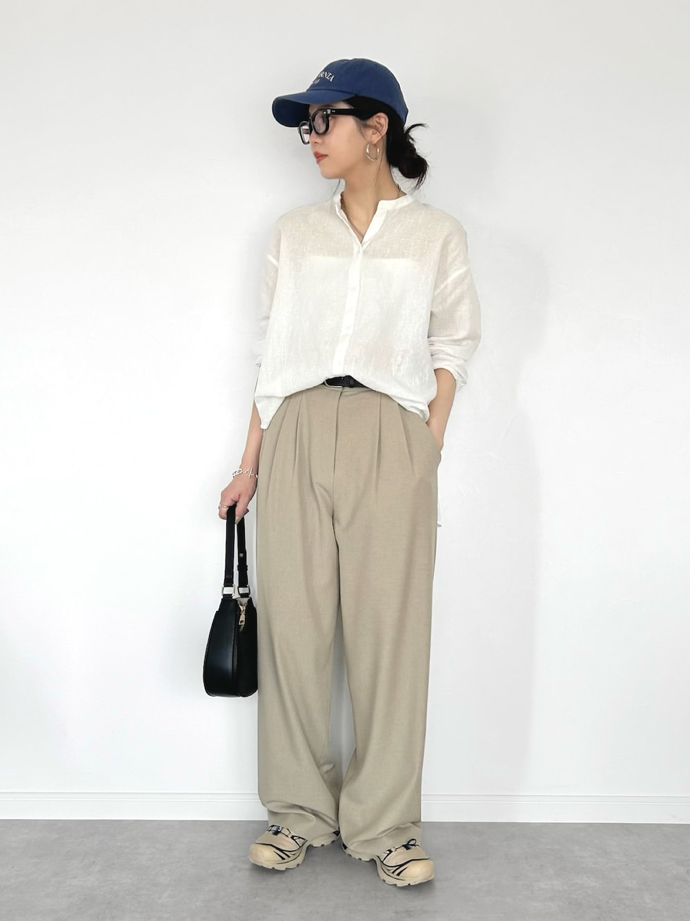 OKIRIのシャツ/ブラウス「リネンコットンバンドカラーシャツ」を使ったコーディネート