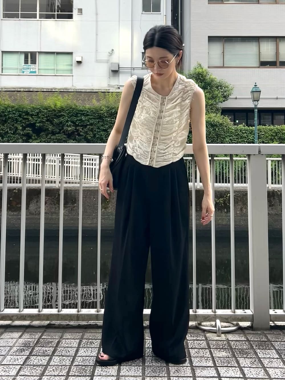 OKIRIのTシャツ/カットソー「Piping Shirring Blouse」を使ったコーディネート