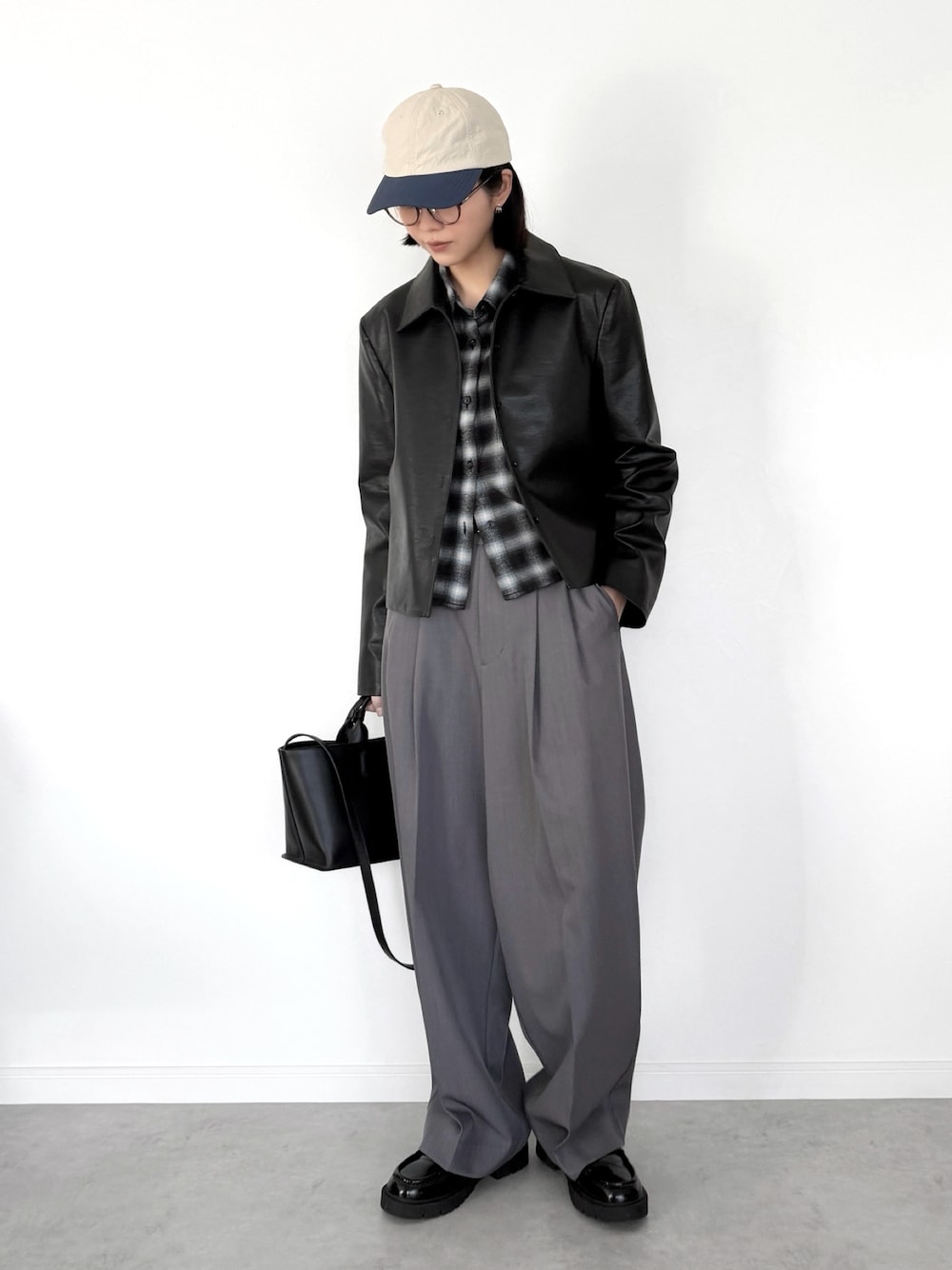 OKIRIのテーラードジャケット「Leather Shirts Jacket」を使ったコーディネート
