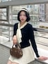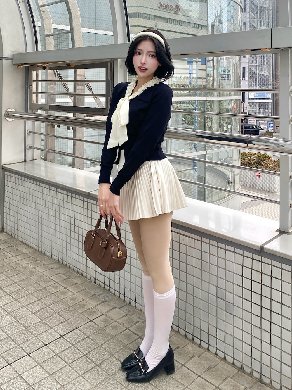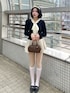ボウタイデザインが主役の クラシカルお嬢様コーデ🐈⬛🤍 プリーツ×ハイソでフレンチムードに仕上げました。