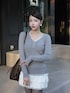 グレー×白の令嬢風コーデ🩶🤍 タイトなリブニットにボリュームのあるフリルミニを合わせて、華奢見えシルエットを意識。 グレーのタイツで足元を繋げると、ミニ丈でも落ち着いた大人っぽい印象にまとまります✨