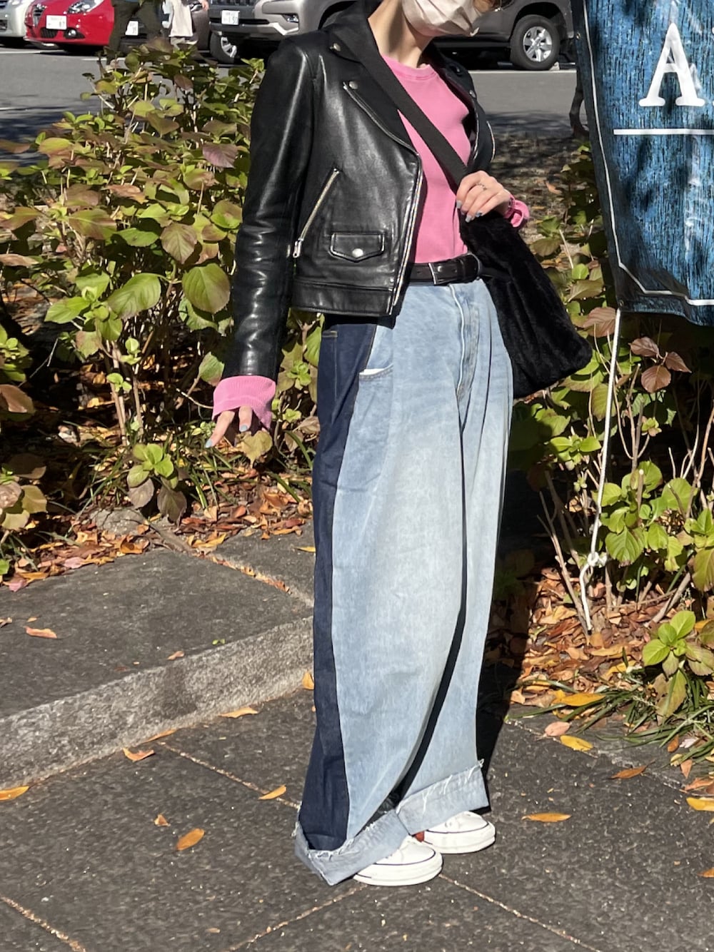 偲央のライダースジャケット「ラムダブルライダース」を使ったコーディネート