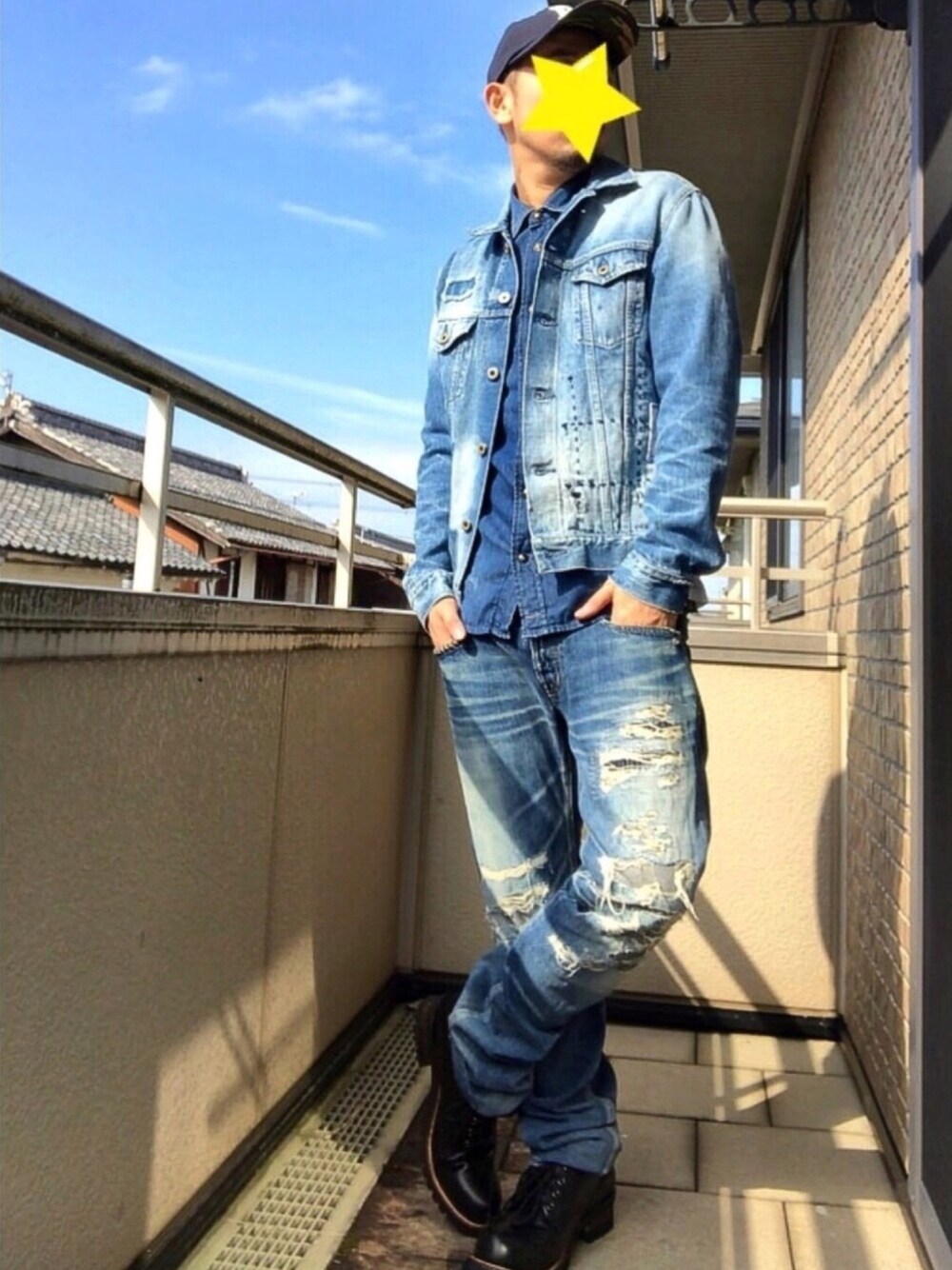皆様おはようございます😊 何時も『いいね』『お気に入り』『フォロー』沢山して頂きありがとうございます!😊 今日はデニデニフェス1日目❗️ 主催者様のKOHさんとSO®︎さんよろしくお願いします!😊 オイラはこーいったフェスに参加するのは初めてでどうしたら良いものか頭の中がふわふわしております〜😅 今回はデニデニって事で普段からデニデニのオイラは何時もと一緒みたいな…大して変化ないとか…って事で開き直ってガッツリ青々デニデニしてやろうかと思います😁 お気に入りのアイテムからご紹介! FOB FACTORYのダメージリペアデニムジャケット❗️ DIESELの弱ダメージデニムシャツ❗️ HYSTERIC GLAMOURのダメージジーンズ❗️ とにかくダメージが好きなので気に入ったアイテムを纏めて見ました😁 キャップにデニムはまだ持ってないのでBEAMSのネイビーのキャップで代用😅 デニデニを壊さないように控えめに足元はBOREDOMの黒のブーツでフニッシュ!😊 皆様のコーデ!もの凄く楽しみにして拝見させて貰います❗️ワクワクです❗️勉強させて頂きます❗️😊 それでは皆様良い一日をお過ごし下さい!よろしくお願いします!😁