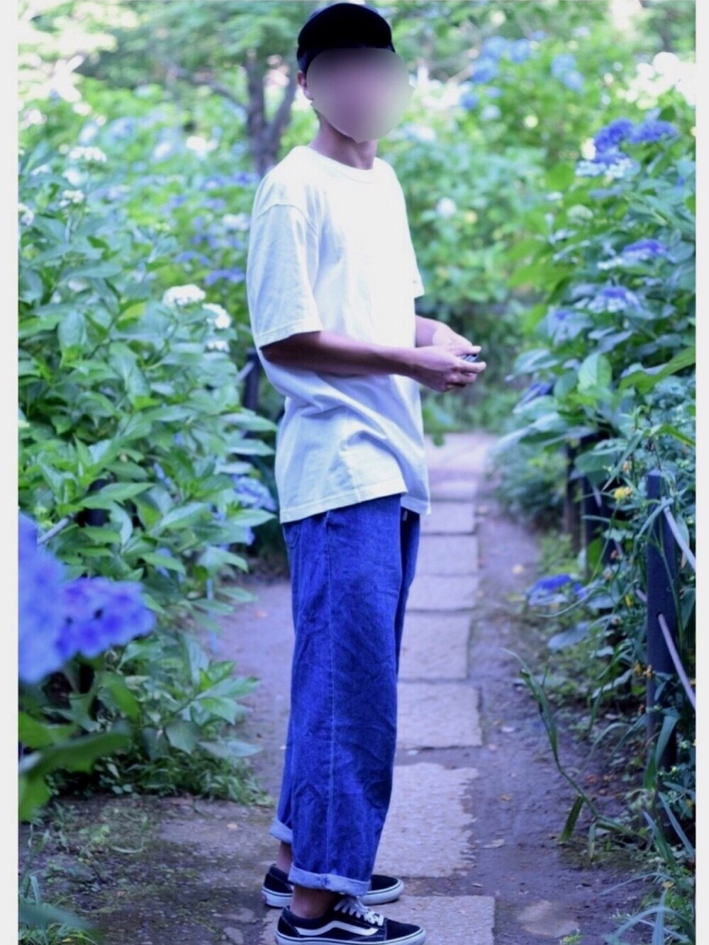 夏はシンプルが一番!コスパよき! 雨が降ったり暑くなったりてで嫌になる笑 後ろの紫陽花すごい綺麗だよね〜