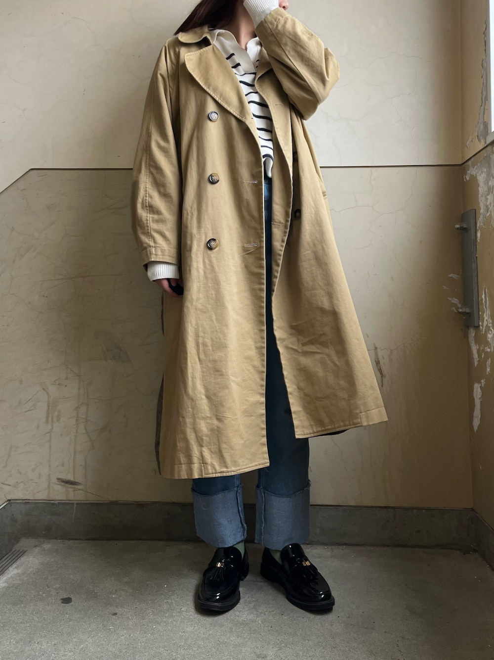 何年も前から着ているkutirさんのトレンチコートです^ ^