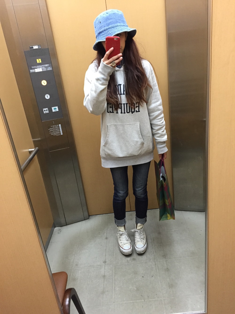 RADIALLのファミリーセールで買った 大きいパーカー amazingstoreで買ったバケハ そして紙袋に大金笑! 寒くてもう次の冬まで着ないなぁと思った パーカーきれた❤︎ いつもバケットハットかぶると すくーるぼーいきゅう だな、と自己満で思ってしまう笑