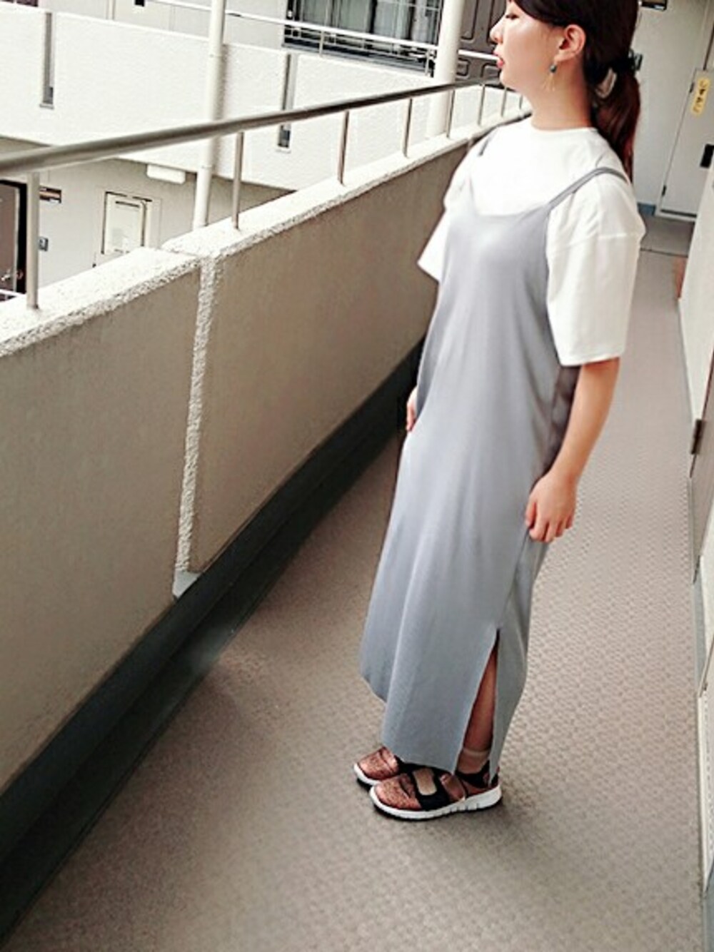 uiのワンピース「KBF リブキャミソールロングワンピース」を使ったコーディネート