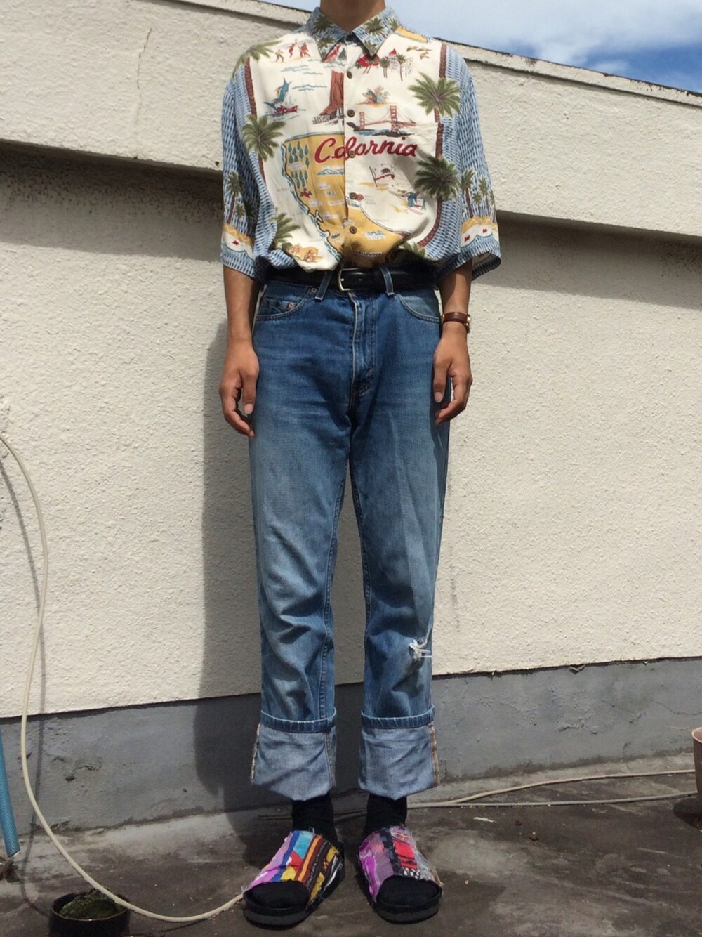 今日の大阪は台風何号かが近づいててめっちゃ風きついです。 そして今日のデニムは親父からの譲り物といえば聞こえはいいですが、お下がり。シワシワなのはいつもです(笑)リーバイスが好きです。USAmadeのデッドストック501持ってるんですが、もう1本欲しいなと思ってます。アロハシャツはレインスプーナーの古着です。何かカリフォルニア柄です(笑)アロハも好きです。夏はレーヨンのアロハが涼しくってたまりません。今日も頑張っていきましょう!