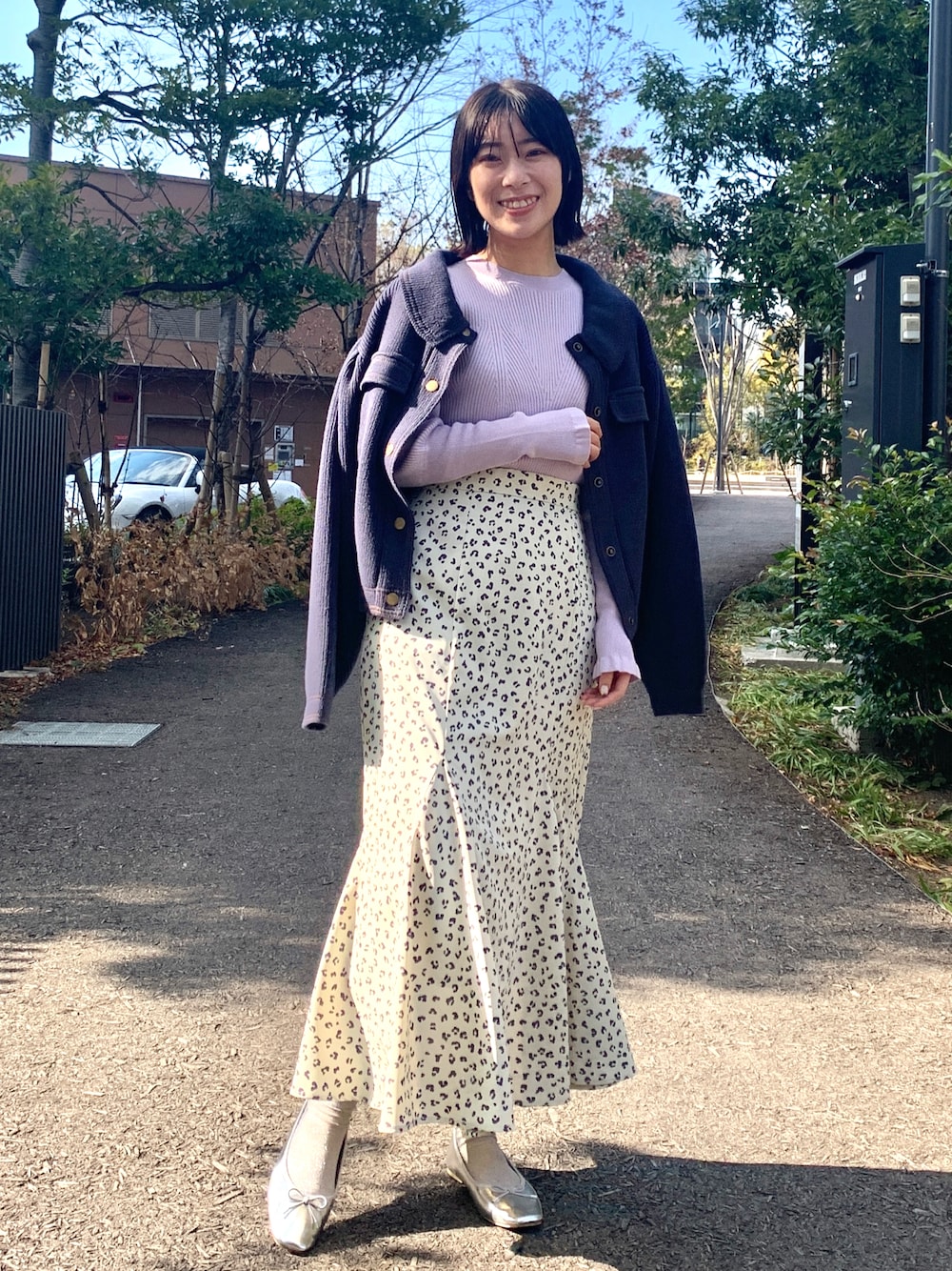 RINA 158cm 春を感じるラベンダーカラーと ニュアンス柄のスカートが 大人女子の心をくすぐるフェミニンコーデ🤍
