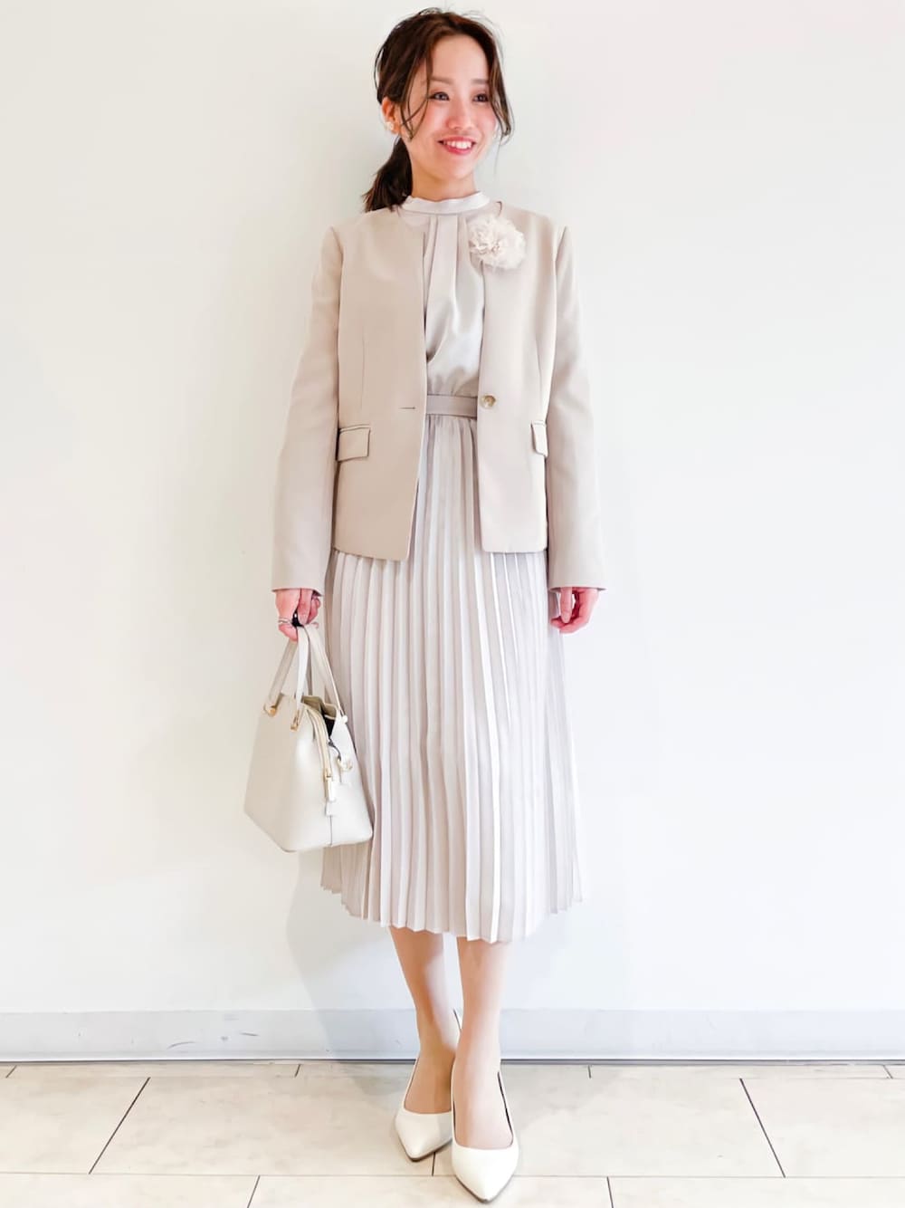 ともも。 158cm 通勤にはもちろん、学校行事やオケージョンシーンにも対応できる、シンプルで上品なデザインのジャケット ワンピースは裏地付きで透け感がく、膝下丈で安心して着れます!
