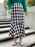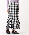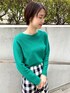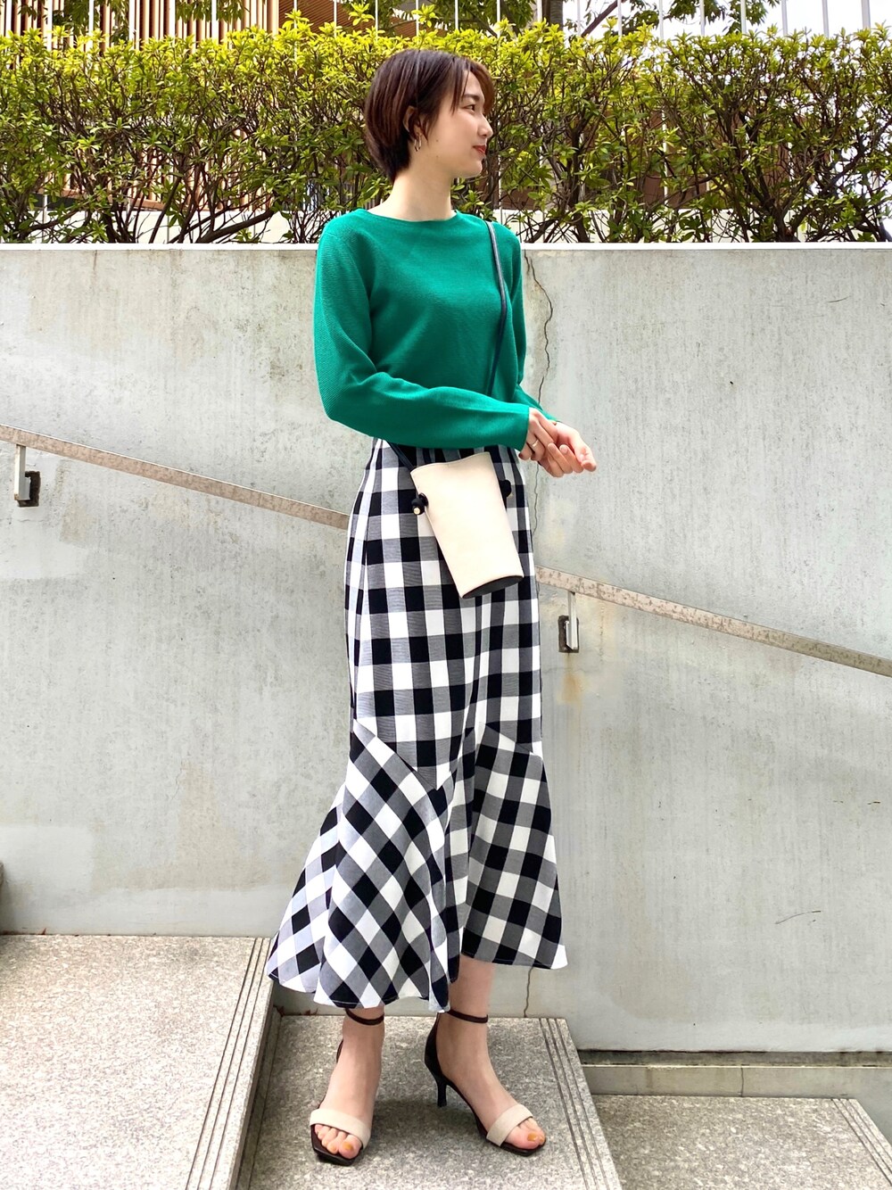 sachiko 174cm 色鮮やかなグリーンのニットに目を惹く大柄のギンガムチェックスカートで大人綺麗めコーデに。ボートネックニットは着心地快適でシルエットが綺麗。