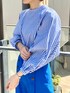 sachiko 174cm 爽やかなブルーコーデ。 タイプライターのブラウスは袖のボリューム感が可愛く1枚で様になるデザイン。 カラーストライプが印象的でシンプルなボトムスとも相性が良いので着回しも◎