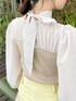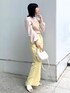 RINA 158cm 肌に馴染みやすいベージュのトップスは、春らしいイエローカラーパンツでメリハリをプラス! ブラウスみたいに着られるのに、ニットドッキングなのでカジュアルでトレンド感ある着こなしができます!後ろのリボンもポイントで可愛いです(^^) 360°どこから見ても可愛いので、 デートなどのお出かけにぴったりです!